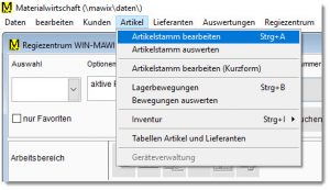 Bei großen Datenbanken kann auch durch Eingabe von einem oder mehreren Buchstaben vorab eine Adressierung vorgenommen werden (zuerst einmal die Pfeiltaste anklicken, dann die Buchstaben eingeben). Die konkrete Auswahl eines Artikels erfolgt durch Mausklick oder mit ENTER-Taste.