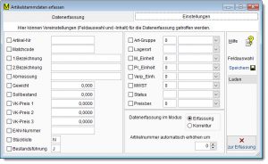 Zur Eingabe eines neuen Artikels ist einfach eine neue Artikelnummer einzugeben, zum Ändern eines Artikels ist eine vorhandene Artikelnummer einzugeben.