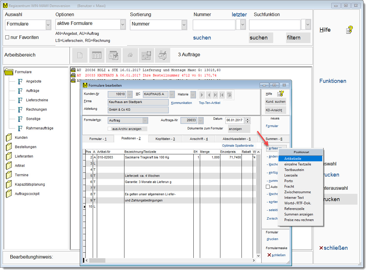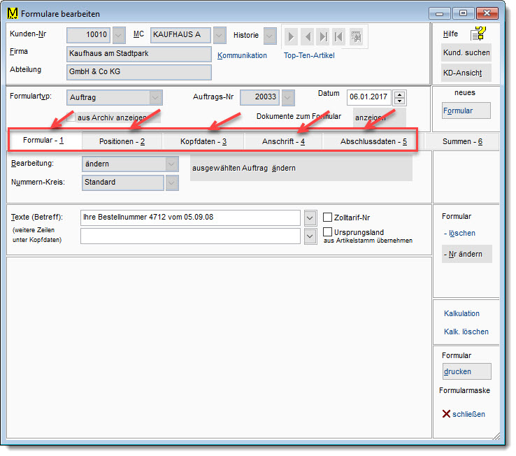Diese können bei Bedarf über das Register im Fenster Formulare bearbeiten einzeln bearbeitet werden.
