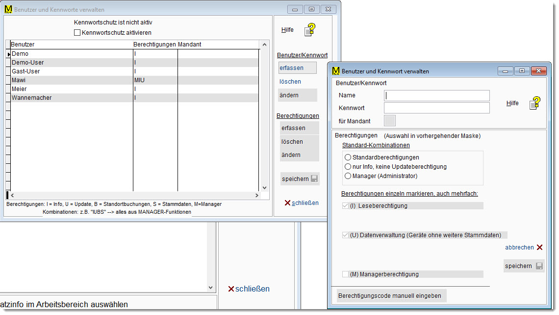 Für WIN-MAWI kann eine Benutzerverwaltung mit weitgehendem Kennwortschutz eingerichtet werden.