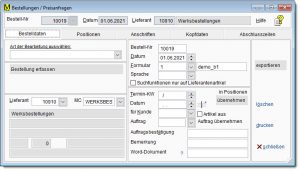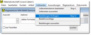 Der Aufruf erfolgt über Menü LIEFERANTEN – BESTELLUNGEN oder an verschiedene Stellen im Regiezentrum.