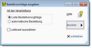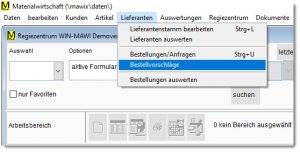 Der Aufruf erfolgt über Menü LIEFERANTEN – BESTELLVORSCHLÄGE