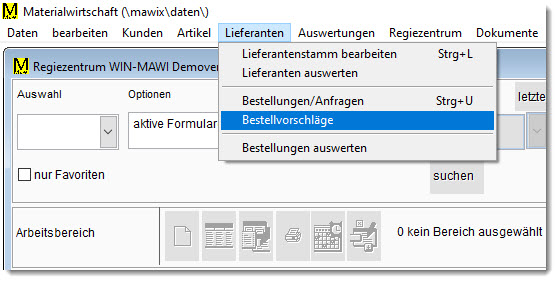 Der Aufruf erfolgt über Menü LIEFERANTEN – BESTELLVORSCHLÄGE