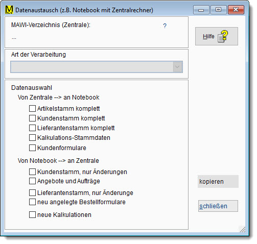 Menü DATEN – SCHNITTSTELLEN – DATENAUSTAUSCH NOTEBOOK