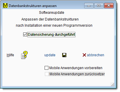 Diese Funktion wird im Zusammenhang mit Softwareupdates benötigt, wenn dabei Datenbankstrukturen geändert werden müssen.