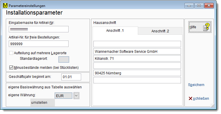 Hier können einige wichtige Einstellungen für WIN-MAWI getroffen werden, Zugriff auf die Maske besteht aber nur mit bevorrechtigtem Passwort.