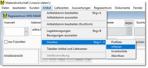 Der Aufruf der Erfassung erfolgt über Menü ARTIKEL – INVENTUR – ERFASSEN