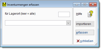 Hier können die Inventurbestände von einer Datei importiert werden. Voraussetzung ist,