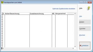 Menü ARTIKEL – ARTIKELSTAMM Register STAMMDATEN-1 Schaltfläche FREMDSPRACHEN