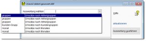 Unter VORHANDENDE AUSWERTUNG WÄHLEN kann eine bereits angelegte Auswertung