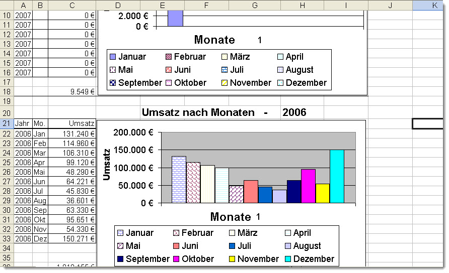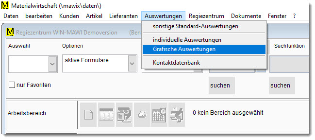 Bei den Grafische Auswertungen wird der Datenbestand mit individuell gestaltbaren Zusatzprogrammen aufbereitet und das Ergebnis in einer Exceltabelle zur weiteren Auswertung bereitgestellt.
