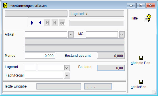 Menü ARTIKEL – INVENTUR – ERFASSEN – ERFASSEN / ÄNDERN