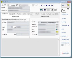 Die erste Seite enthält die Anschrift und eventuell eine abweichende zweite Anschrift. Diese kann wahlweise als vom Standard abweichende Liefer- oder Rechnungsanschrift verwendet werden.