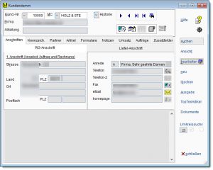 | Die Stammdaten zum Kunden werden auf verschiedenen Registerseiten verwaltet. Der Aufruf des Kundenstamms erfolgt über das Menüsystem (Auswahl KUNDEN) oder das Regiezentrum. |