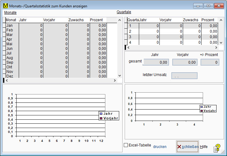 Hier werden die Umsätze eines Kunden nach Monaten/Quartalen angezeigt.