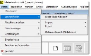 Über die Auswahl Schnittstellen können verschiedene Import- und Exportfunktionen aufgerufen werden.